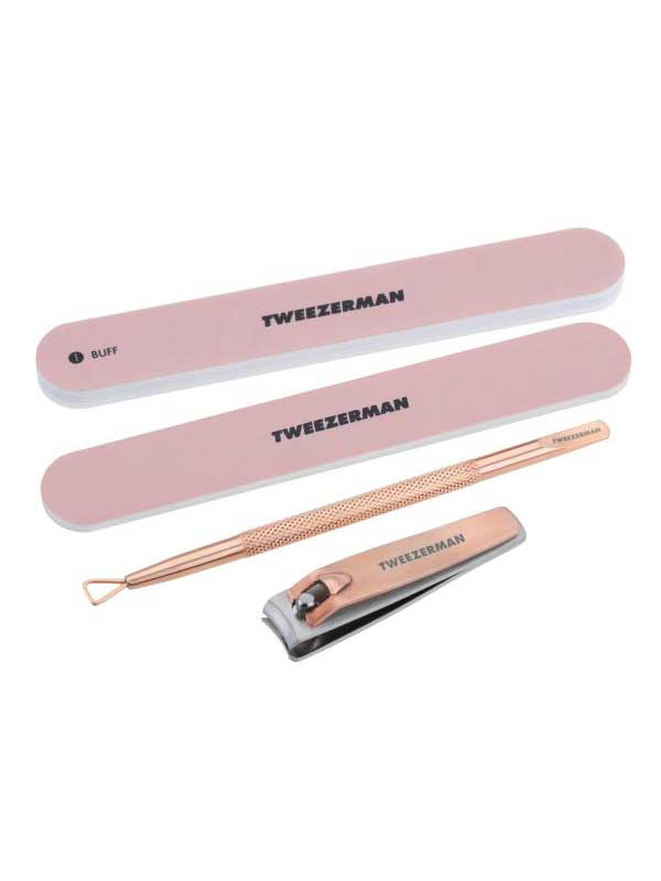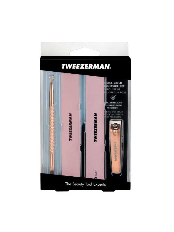 Manikyyrisetti yhdistää Tweezermanin myydyimmät manikyyritarvikkeet suosituimpaan väriin, ruusukultaan. Leikkaa, muotoile ja kiillota kynnet asiantuntevasti näillä välttämättömyyksillä.