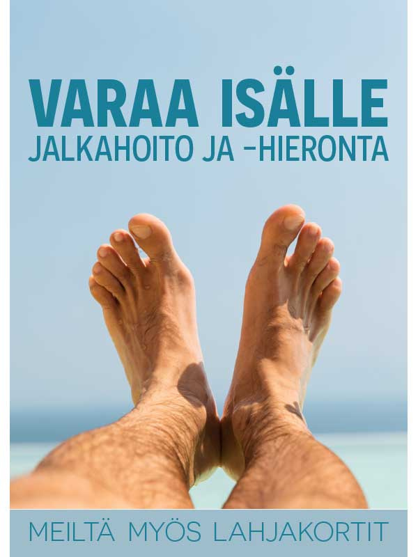 Kausijuliste Varaa isälle jalkahoito ja jalkahieronta. Koko 50×70 cm, materiaali julistepaperi.