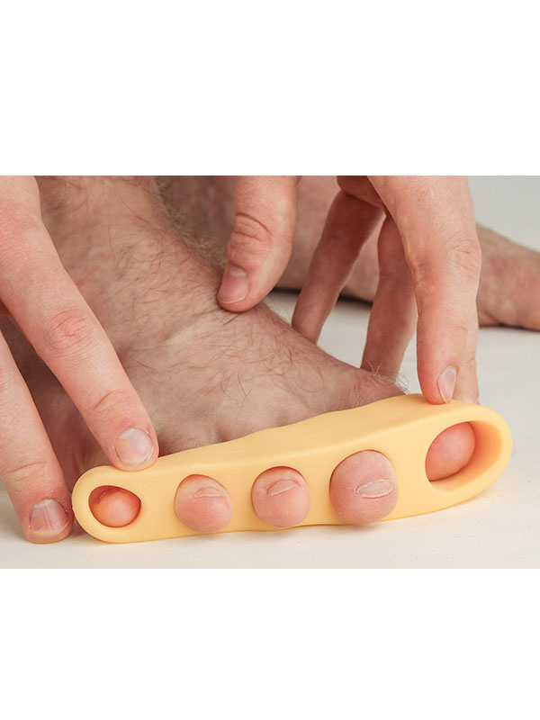 Rentouttaa ja venyttää varpaita. Ihoa hoitava, pehmeä materiaali sisältää mm. kasviöljyjä ja keramideja. Käytä säännöllisesti iltaisin kun haluat rentouttaa varpaita. Mikäli Mortonin pinne oirehtii voit käyttää levitintä myös koko yön. Pujota varpaat niihin tarkoitettuihin koloihin ja anna varpaiden venyä ja rentoutua. Sopii noin 41-47 kokoiselle jalalle.