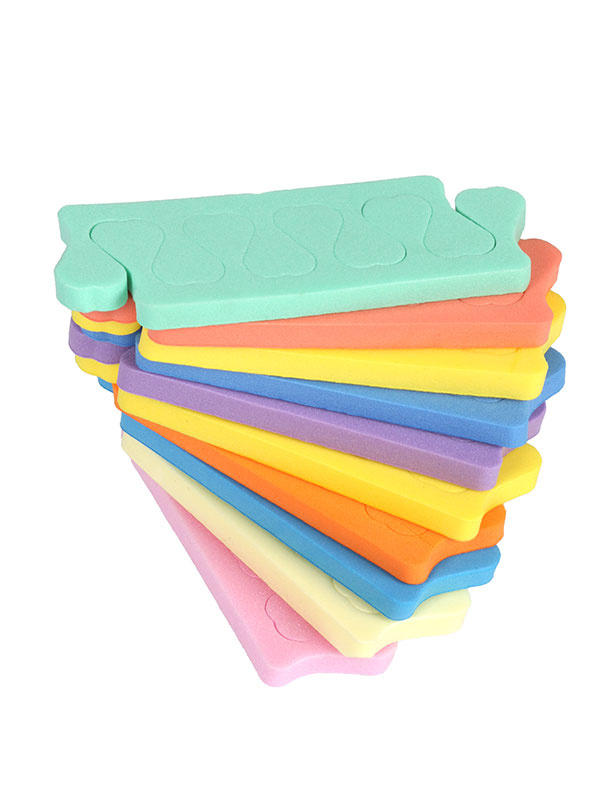 Jämäkkä vaahtomuovinen varvaskampa kynsien lakkaukseen. 10 paria, eri värien lajitelma.