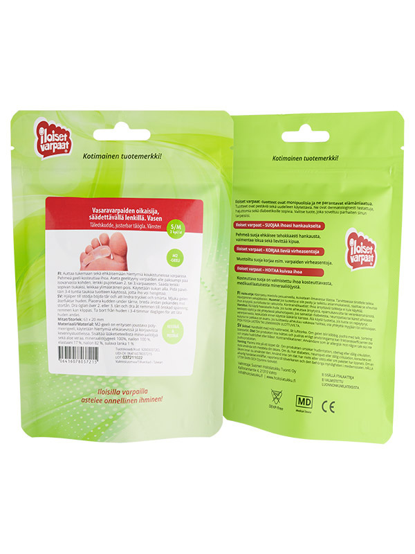Iloiset varpaat -geelituotteet ovat monipuolisia ja ne parantavat elämänlaatua. Tuotteet ovat pestäviä sekä uudelleen käytettäviä. Ne ovat dermatologisesti testattuja, hajuttomia sekä diabeetikoille sopivia. Tuotteissa käytetyt silikonit ja mineraaliöljyt ovat lääketieteellistä laatua.