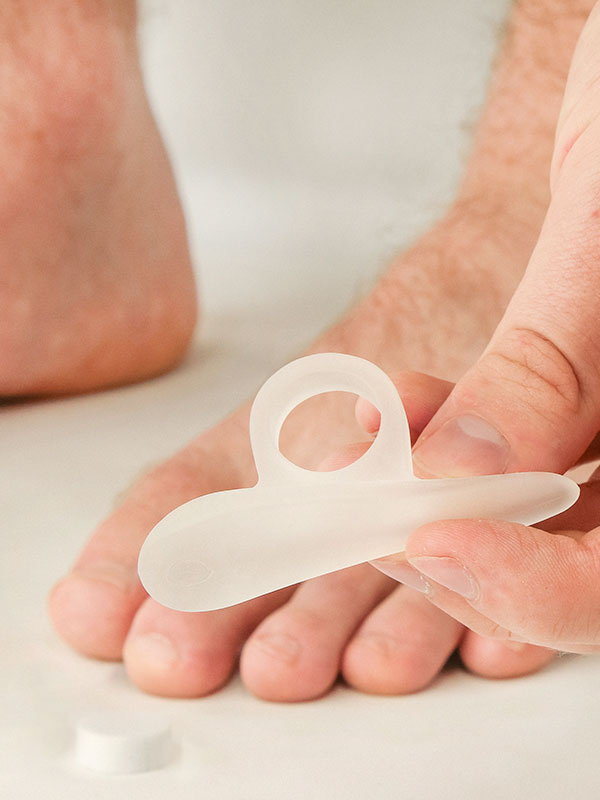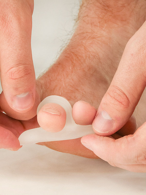 Auttaa korjaamaan koukistuneiden varpaiden virheasentoja. Ehkäisee myös hiertymien syntymistä koukistuneissa varpaanpäissä. Käytetään sukan alla ja sopii myös aktiiviliikkujille. Aseta geelityyny varpaiden alle paksumpi pää isovarvasta kohden, lenkki pujotetaan 2. tai 3.varpaaseen. Pidä päivittäin 3-4 tuntia taukoa tuotteen käytössä, jotta iho voi hengittää.