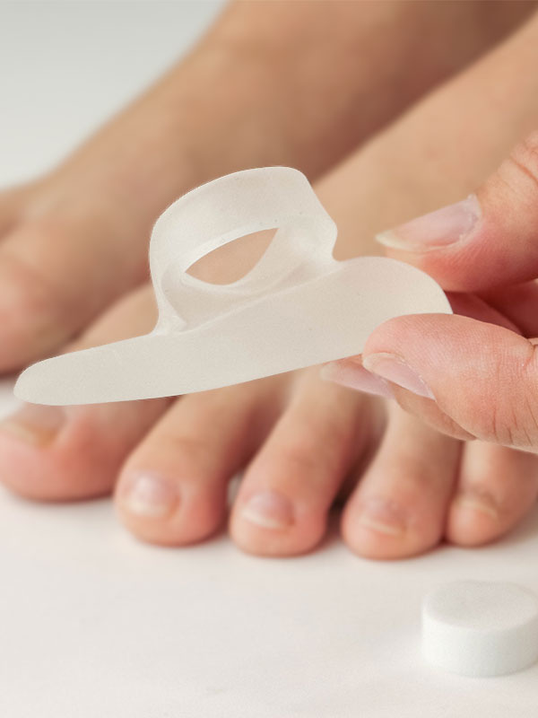 Auttaa korjaamaan koukistuneiden varpaiden virheasentoja. Ehkäisee myös hiertymien syntymistä koukistuneissa varpaanpäissä. Käytetään sukan alla ja sopii myös aktiiviliikkujille. Aseta geelityyny varpaiden alle paksumpi pää isovarvasta kohden, lenkki pujotetaan 2. tai 3.varpaaseen. Pidä päivittäin 3-4 tuntia taukoa tuotteen käytössä, jotta iho voi hengittää.