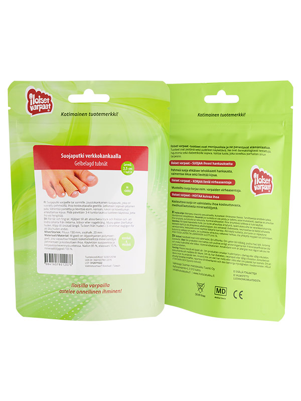Suojaputki varpaille tai sormille. Joustokankainen suojaputki, joka on vuorattu pehmeällä, ihoa kosteuttavalla geelillä. Leikataan sopivan pituinen pala. Vähentää painetta ja lievittää esim. känsän, rakon tai kovettuman aiheuttamaa kipua. Putken pituus noin 15 cm.