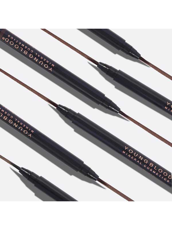 Erittäin tarkkakärkinen YOUNGBLOODin silmänrajaustussi. Runsas pigmentti tuo katseeseen syvyyttä ja terävä kärki mahdollistaa niin ohuen ripsirajarajauksen, kuin taidokkaiden siipirajausten teon helposti ja vaivatta. Käytössä kestävä ja riittoisa. Koko 0,55ml.