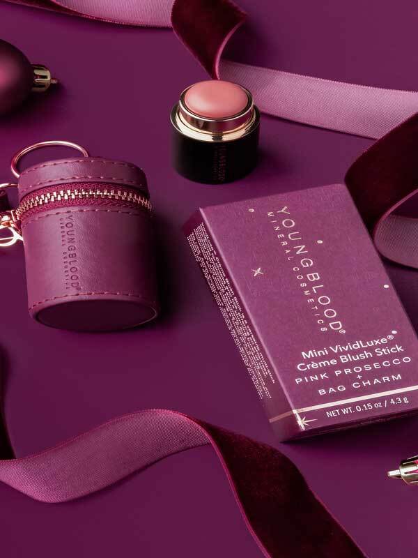 YOUNGBLOODin upea limited edition -pakkaus sisältää yhden sarjan myydyimmistä VividLuxe Crème Blush Stick -poskipuikoista minikokoisena, sävyssä Pink Prosecco (4,3g).