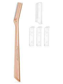 Monikäyttöinen kasvoveitsi kuorii pois kuollutta solukkoa ja poistaa samalla pienimmätkin velluskarvat. Toimii myös parta- ja viiksikarvojen ajeluun tarvittaessa. Uusi ruusukultainen sävy. Pakkauksessa 3 vaihtoterää suojakorkkeineen.