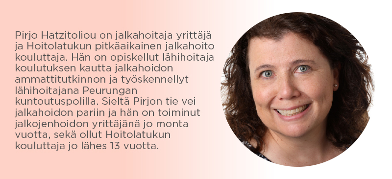 Teksti: Pirjo Hatzitoliou | Jalkojenhoitaja at, lähihoitaja, yrittäjä, kouluttaja