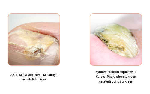 Miten sitä kynttä sitten ohennetaan ja millä? Jokaisella jalkahoitajalla on omat mieltymykset ohentaviin poranteriin, mutta tärkeintä ohentamisessa on, että se käy mahdollisimman nopeasti. Poranterissä on monia vaihtoehtoja karbidista ruostumattomaan teräkseen ja keramiikka vielä sieltä välistä. Jos hoitolassa on käytössä imuripora, niin keramiikkaterien pöly on näistä poranteristä ohuinta. Kun poranterä on kunnollinen, myös jälki työkohteessa on hyvä. Uudet keramiikkaterät sopivat hyvin kynnen tarkkaan puhdistamiseen.