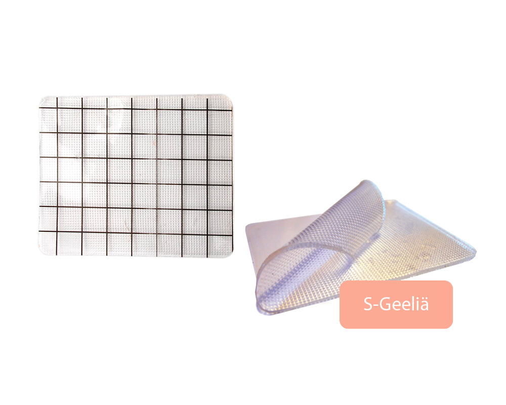 Esim. tuote: 92001360M Geelinappi, 92001200M Geeliputki, 92001298 / 92001299 Anatomisesti muotoiltu kaksoissuoja päkiätyynyllä
