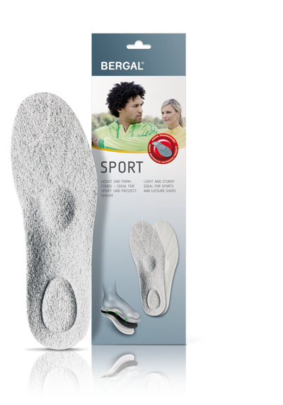 Bergal Sport -pohjallinen on kevyt, tukee jalkaa sekä jakaa painon tasaisemmin koko jalkapohjan alueelle. Pohjallisessa kevyt pitkittäiskaaren ja päkiän tuki. Pohjallinen imee kosteutta ja vähentää epämiellyttäviä tuoksuja jalkineessa. Sopii hyvin urheilu- ja vapaa-ajan jalkineisiin.